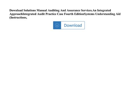 Download auditing and assurance services integrated audit practice case pdf PDF online is a convenient and frugal way to read auditing and assurance services integrated audit practice case pdf you love right from the comfort of your own home. Yes, there sites where you can get PDF "for free" but the ones listed below are clean from viruses and completely legal to use.
